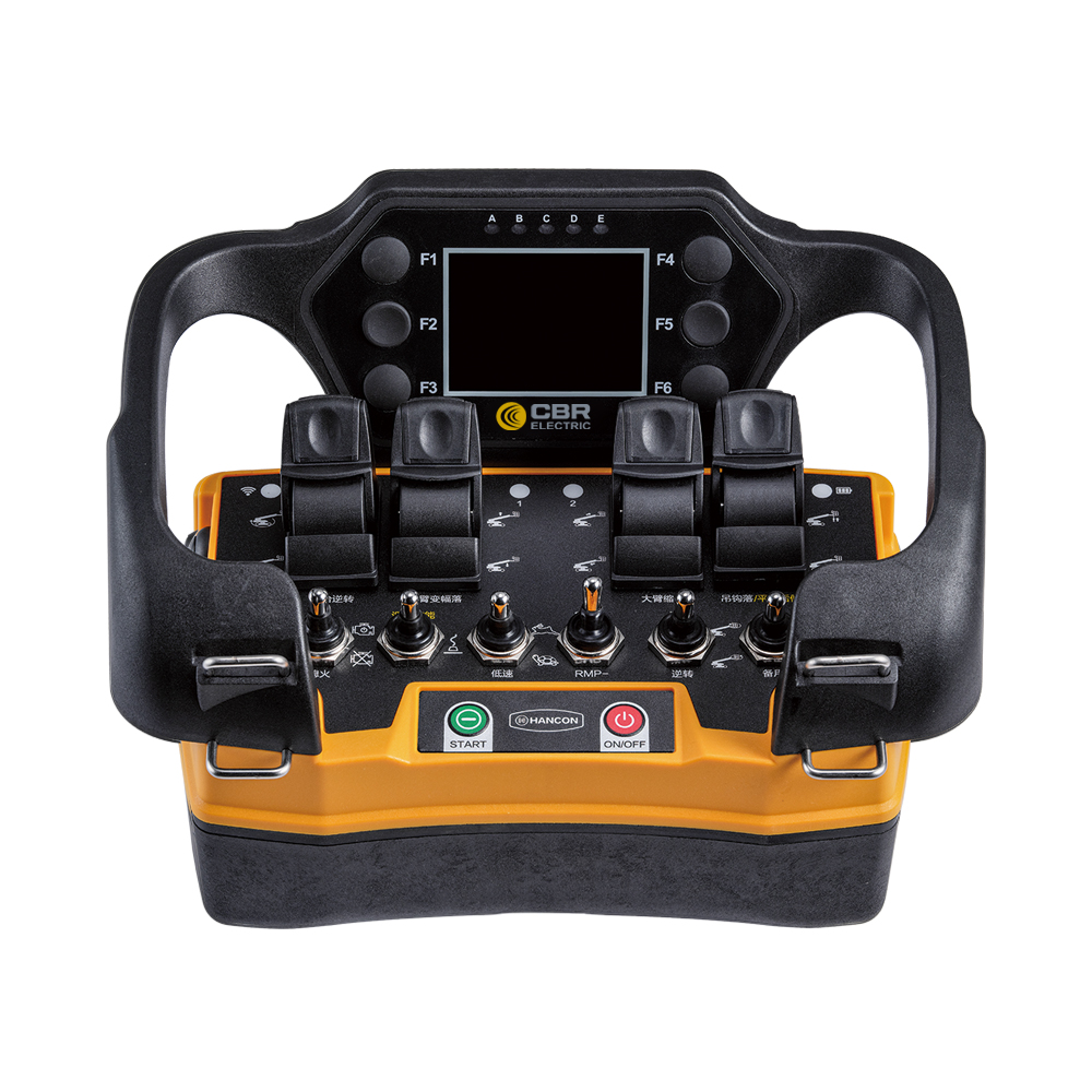 This transmitter can be equipped with multiple toggle switches,buttons, gear switches, and potentiometers to operate and control various functions; For example, the start/stop, acceleration and deceleration of the engine, sound signals, and flow and speed control of the hydraulic system. Adopting high- quality operating levers and toggle switches, it has a good operating feel.