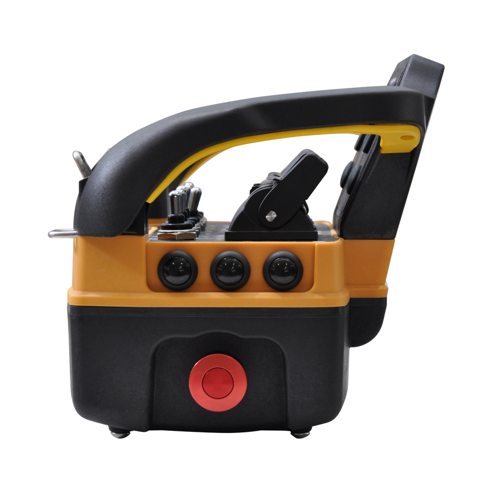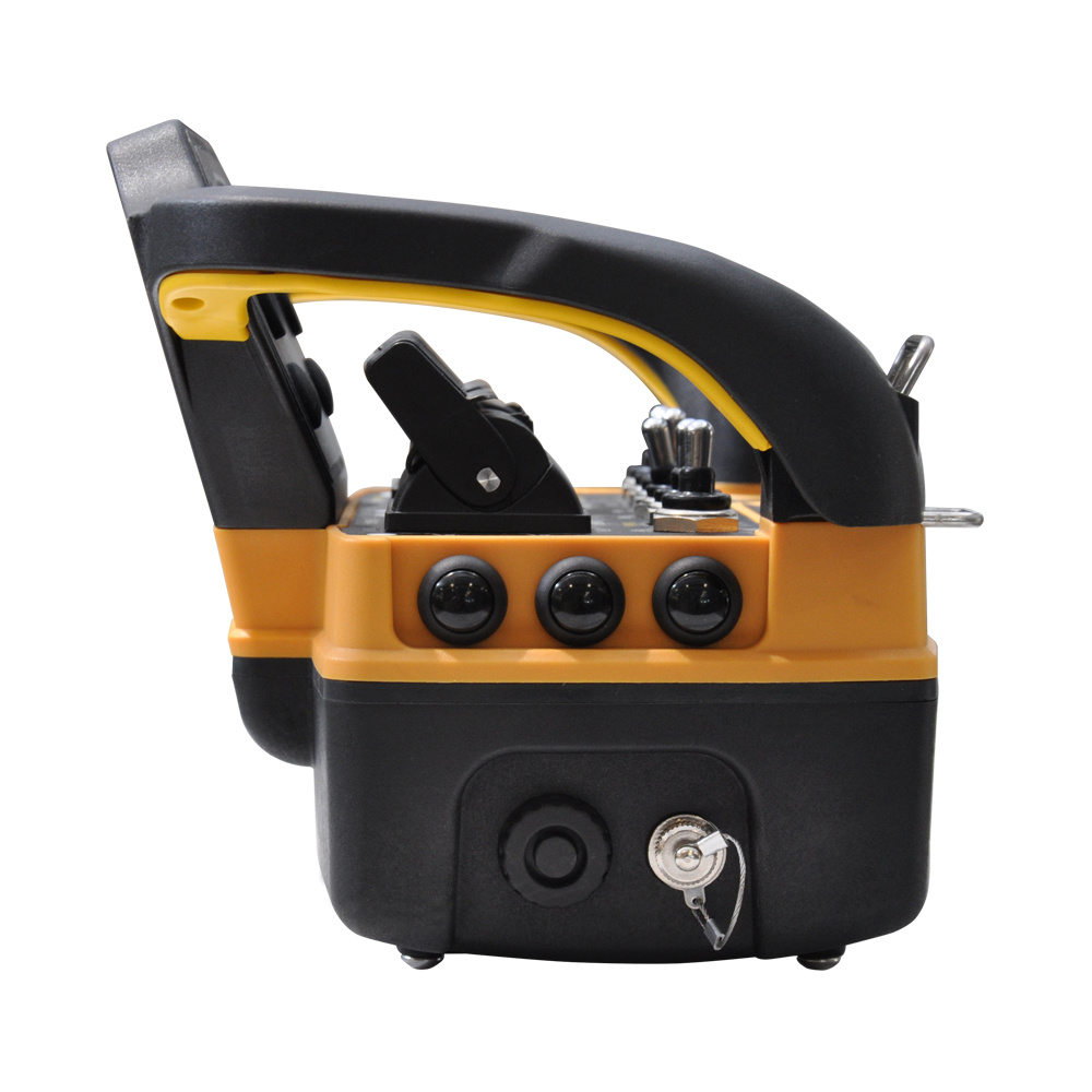 This transmitter is equipped with an emergency stop switch, which can immediately stop all movements and functions of the lifting machinery. The emergency stop function complies with EN13849: 2008cat.3, PL=e standard.
