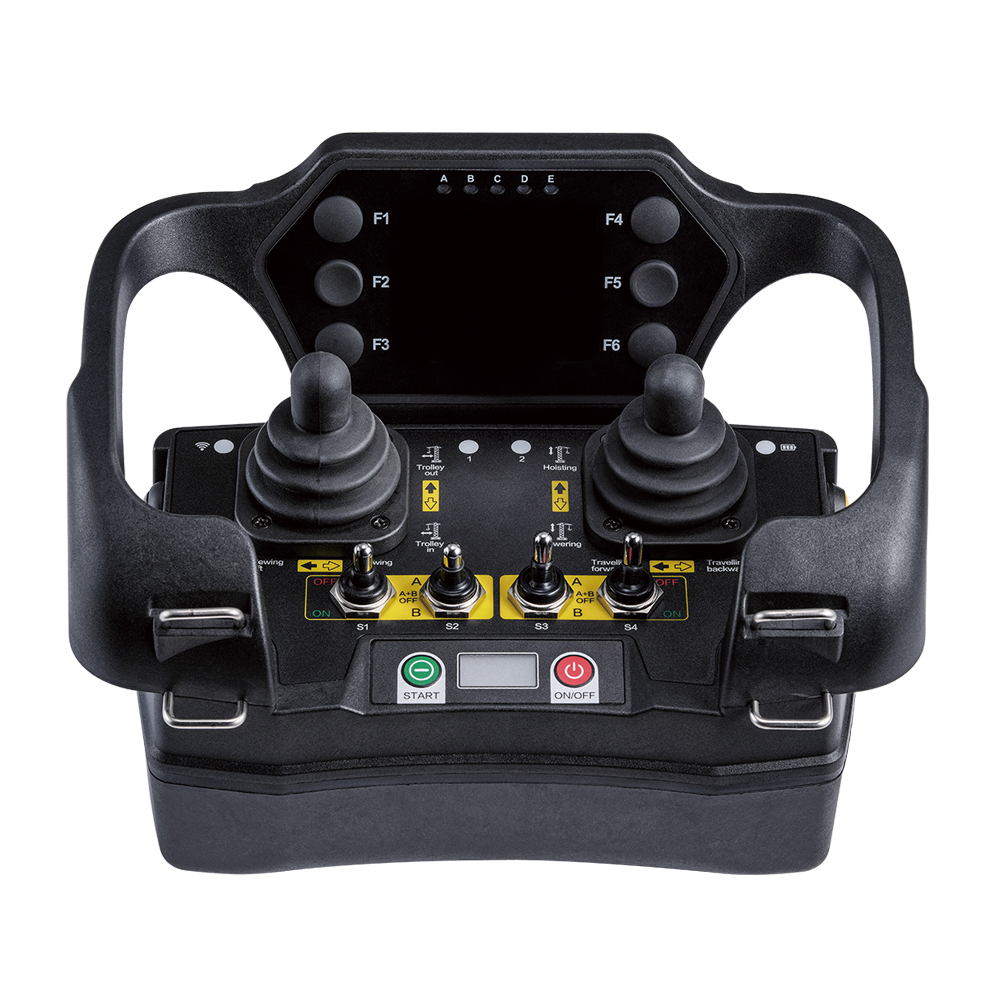The HBT EX series remote control is a standard multifunctional transmitter that can be easily customized according to your needs. With its modular design, the HBT EX transmitter can use 1-6 linear joysticks or 1-3 cross handle joysticks, as well as several buttons and switches. The size and arrangement of all control components have been carefully designed to facilitate long-term and frequent use by operators without feeling tired.